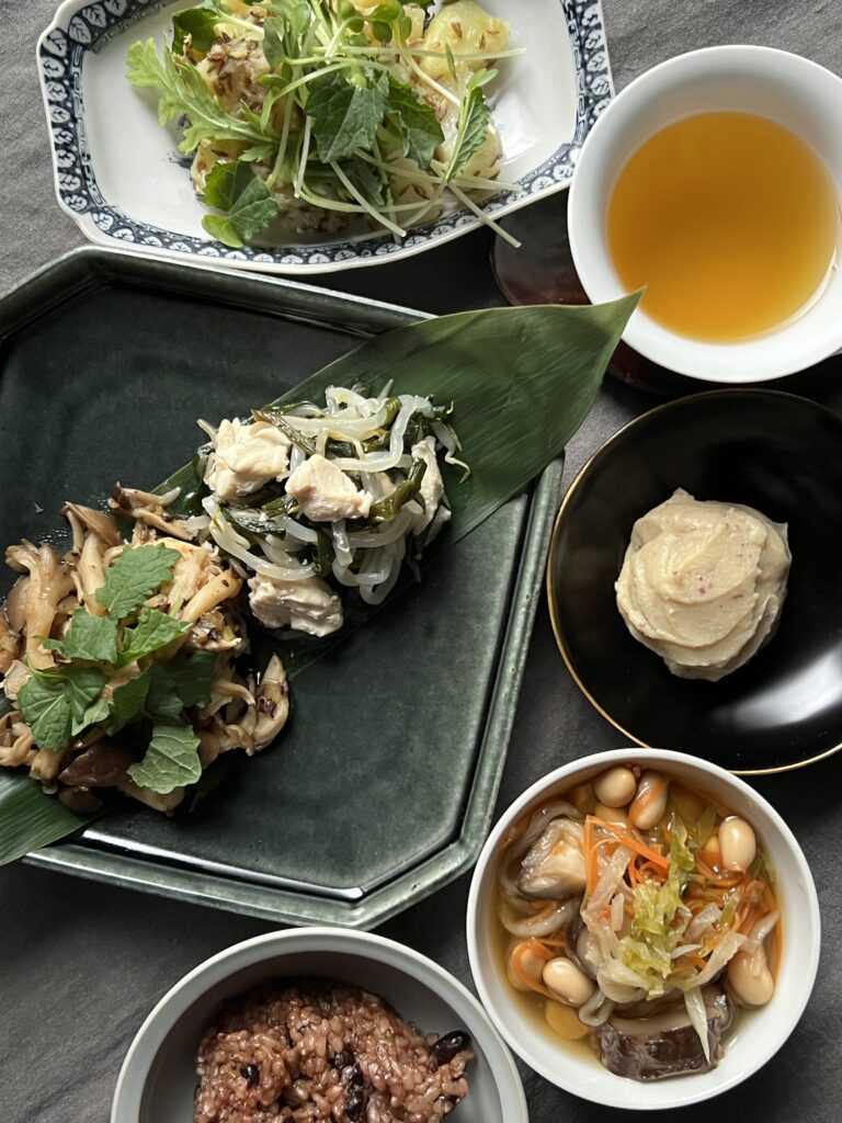・ささみと木の子類の元気アップ豆豉蒸し炒め 全5品 薬膳茶